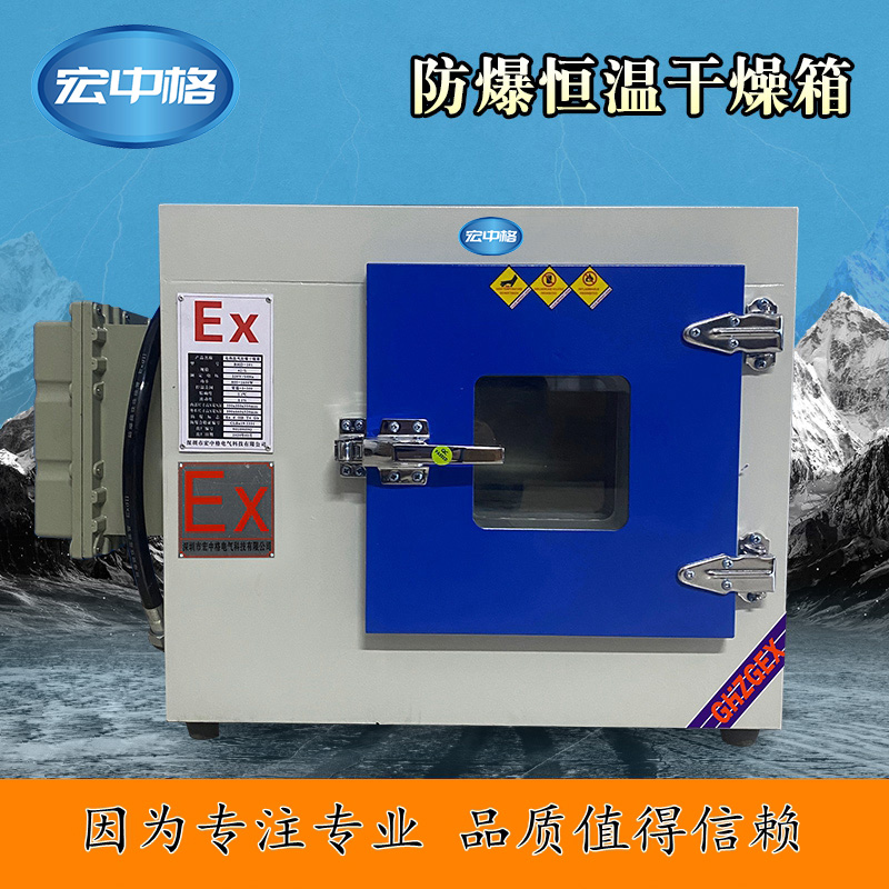 宏中格防爆电热鼓风式恒温干燥箱,可用于石油、化工、军事、炸药、医疗、制药、科研、实验室等相关领域。可在温度组别为T2~T4易燃易爆等危险场所中使用。加热采用防爆加热管,控制器采用日本富士微电脑智能控制仪,具有温度均匀性好,控温精度高等特点。