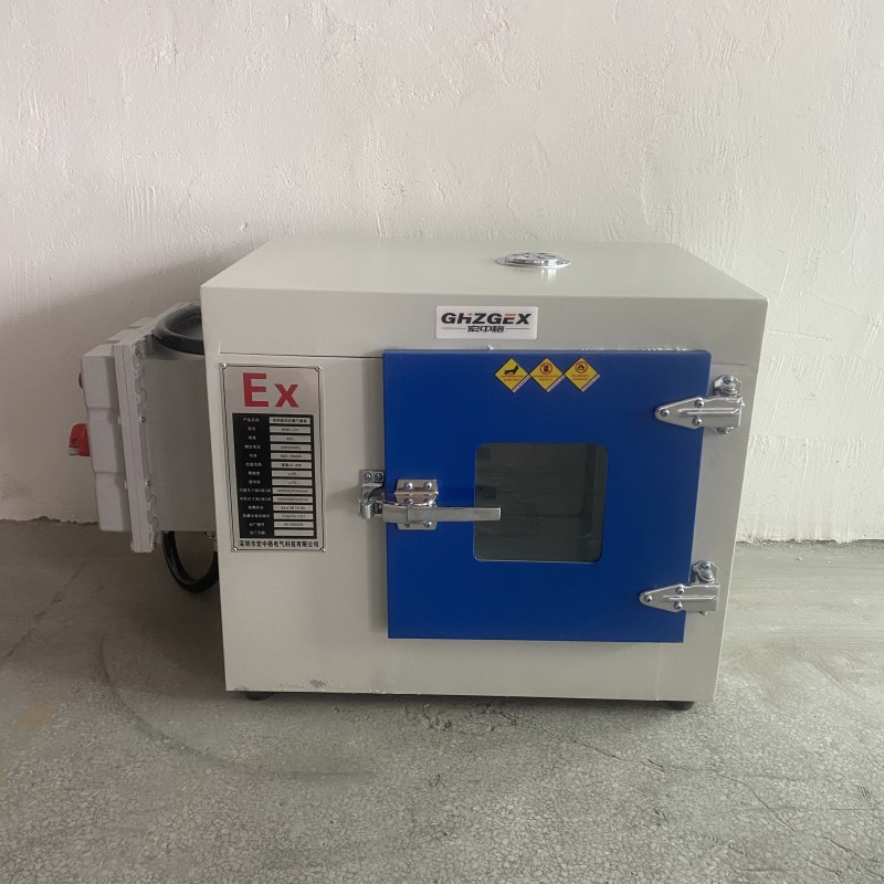 BHD系列宏中格防爆干燥箱(鼓风式),外壳体均采用上等钢板表面烘漆,工作室采用不锈钢板,无静电,中间层充填超细玻璃棉隔热。工作室与箱门连接处装有耐高温硅橡胶密封圈,以保证工作室与箱门之间密封。防爆烘箱电源开关、风门调节旋钮、控温仪等操作均设置于箱体的上前方及顶箱上。控制仪表及全部电器采用隔爆、浇封、本安等复合防爆技术处理,传感器采用安全栅保护,确保产品安全可靠使用。防爆烘箱箱内加热恒温系统主要由装有防爆电加热器、合适的风道结构和控温仪组成。当接通干燥箱电源时,电机热器即开始加热,直接将装置于箱夹层内的加热器产生的热量通过鼓风均匀不断的向工作室内扩散,经过工作室内干燥物品的吸入,达到热平衡。电加热器在微电脑的控制下,先从大功率加热至间接性补充加热,使加热速度控制在一定时间内,达到箱内的恒温要求。另外,通过箱顶部的两个风门调节器的调节片,调节左、右两侧的箱内的进出空气量及排湿,使箱内温度的均匀、干燥的速度加快。微电脑智能控温仪,采用自整定PID技术,与传统的PID控制相比具有控温迅速,响应快,超调小、精度高的特点,设定温度和箱体内温度同时均有数字显示,具有上限跟踪报警功能,使用轻触按键设定参数,操作方便。