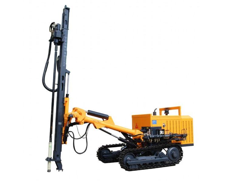 “开山牌”履带式露天潜孔钻车可以配置各种型号的潜孔冲击器,能够钻凿不同孔径、不同深度、多种方位、多种角度的爆破孔、予裂孔、锚索锚杆孔、灌浆孔、勘测孔等,适应范围宽,凿岩效率高。