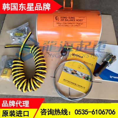 龙海起重现货销售韩国进口气动平衡葫芦:东星气动平衡葫芦可上下300mm悬浮,使双手无阻力移动负载,操作轻松且比气动葫芦定位更准,适用于精密工件、高频率工件的装配、搬运、组装等。过载保护、断气保护功能,操作安全。