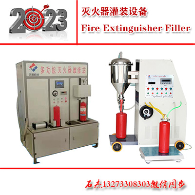 灭火器充装设备新型通过如下技术方案实现:灭火器充装设备新型提出了一种七氟丙烷灭火器用充装装置,包括固定架,所述固定架内部底端设置有传输机构;