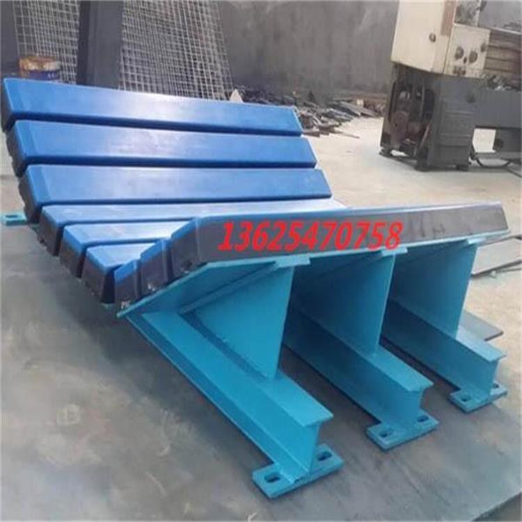 4、缓冲条的表面材料为UHMW-PE,表面光滑且耐磨,可减少摩擦阻力,延长使用寿命。橡胶可有效吸收物料对皮带的冲击力。