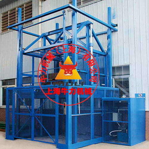 上海牛力机械导轨直顶式升降平台为无软牵引的采用多级同步伸缩油缸的液压升降平台,不同于传统的市面上的提升式、剪叉式升降平台,提升式为链条链接,剪叉式为铰轴链接,直顶式平台为硬性链接,无链条牵引,无铰轴链接,主要用于中高楼层及作业现场复杂的场所装载升降货物。