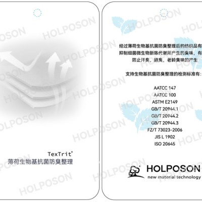 富锗整理剂HOLPOSON® GE是本公司采用纳米微米微胶囊技术制成的功能型整理剂,后整理高温定型能使富锗整理剂HOLPOSON® GE牢固的结合在纺织品上,使其具有持久的释放功能。