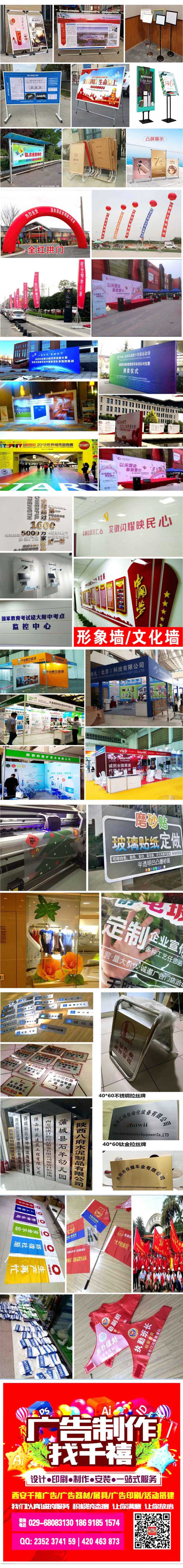 本处拥有丰富的广告物料生产制作经验,公司所在地区位于陕西西安市.我们以诚信、实力和质量获得业界的高度认可,坚持以客户为核心,“质量到位、服务至上”的经营理念为广大客户提供满意的服务。欢迎各界朋友莅临公司参观、指导和业务洽谈。