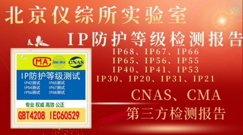 北京仪综所检测中心提供IP68水等级认证,IP65防护等级测试服务,提供国家认可的第三方检测报告,CNAS和CMA检测报告。