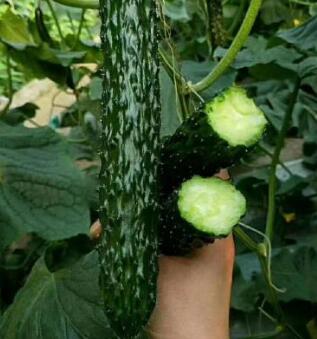三、普通黄瓜苗品种—绿冠108,黑油亮黄瓜苗,顺直,绿瓤,翠绿油亮型,瓜贸易长度36厘米左右,亩产4万斤以上。