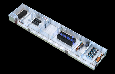 这个机房空间分为三个房间,从左到右边是操作间或是监控中心,负责整体机房的运行。中间这个房间是电池间或是UPS布置房间。最右侧的房间为网络机柜摆放区。三个房间以此摆开,相互独立却又组成了一个整体。