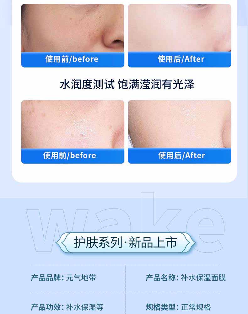 核心功效:补水 + 保湿,双重功效,肌肤水嫩透亮