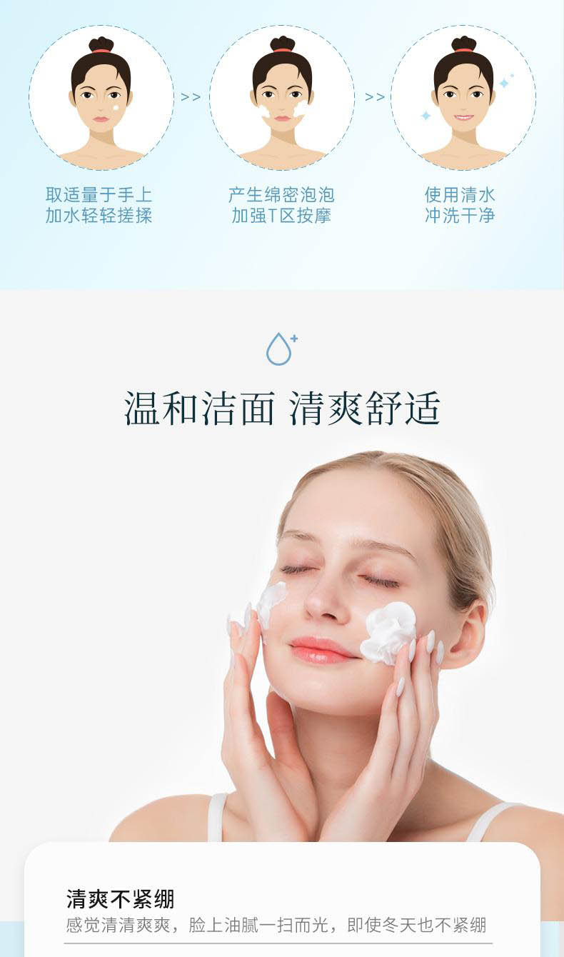 温和配方:采用氨基酸配方,温和不刺激,适合每日使用。
