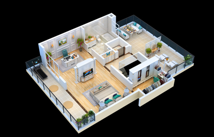 太原三维户型鸟瞰效果图制作,也叫做立体户型图,或是3D室内户型图等。这种一般常用在地产策划的户型单页上,或是印刷,或是打印,或是用在客户端做成动态全景图,环视动画等。这种图其实搭配平面图,算是一种很好的营销方式。