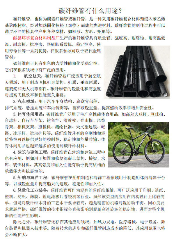 碳纤维管,也称为碳素纤维管或碳纤管,是一种采用碳纤维复合材料预浸入苯乙烯基聚酯树脂,经过加热固化拉挤(缠挠)而成的先进材料。碳纤维管的制作过程中可以通过不同的模具生产出各种型材,如圆形、方形、矩形等。