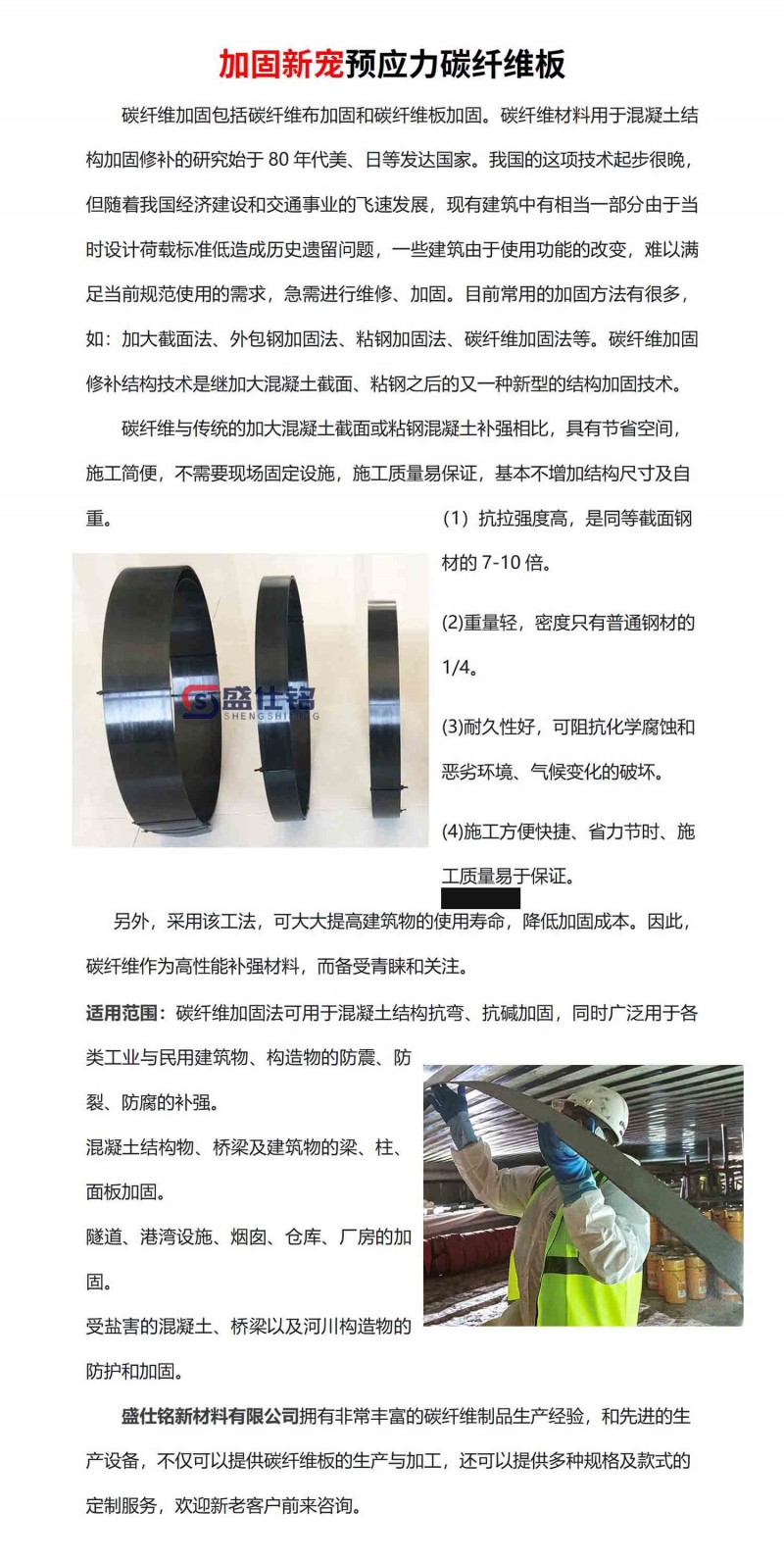 碳纤维加固包括碳纤维布加固和碳纤维板加固。碳纤维材料用于混凝土结构加固修补的研究始于80年代美、日等发达国家。我国的这项技术起步很晚,但随着我国经济建设和交通事业的飞速发展,现有建筑中有相当一部分由于当时设计荷载标准低造成历史遗留问题,一些建筑由于使用功能的改变,难以满足当前规范使用的需求,急需进行维修、加固。目前常用的加固方法有很多,如:加大截面法、外包钢加固法、粘钢加固法、碳纤维加固法等。碳纤维加固修补结构技术是继加大混凝土截面、粘钢之后的又一种新型的结构加固技术。
