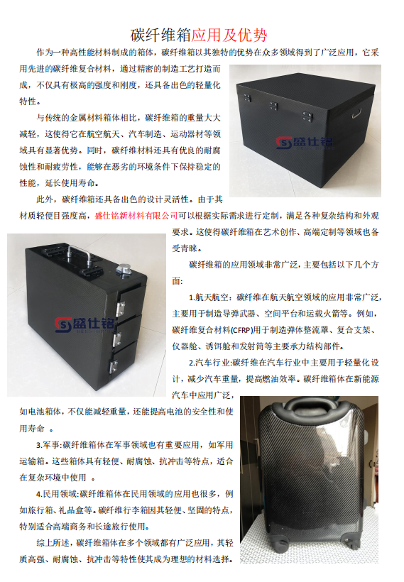 作为一种高性能材料制成的箱体,碳纤维箱以其独特的优势在众多领域得到了广泛应用,它采用先进的碳纤维复合材料,通过精密的制造工艺打造而成,不仅具有极高的强度和刚度,还具备出色的轻量化特性。